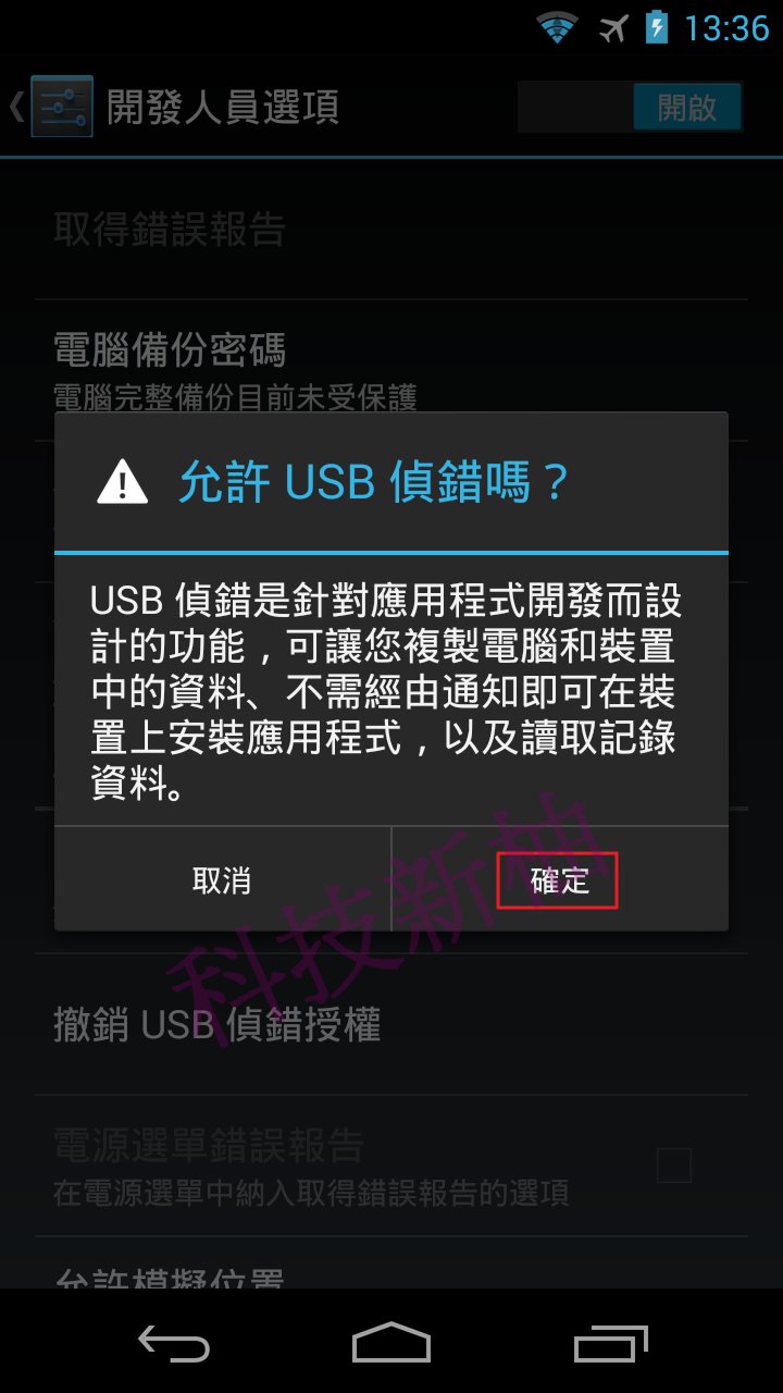 3.開啟 USB 偵錯功能。
