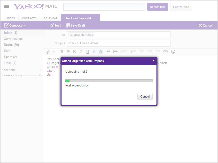Yahoo Mail 與 DropBox 合作 未來可傳送更大的檔案